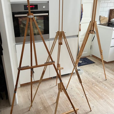 Tegnestativ en Tavle og et Whiteboard.