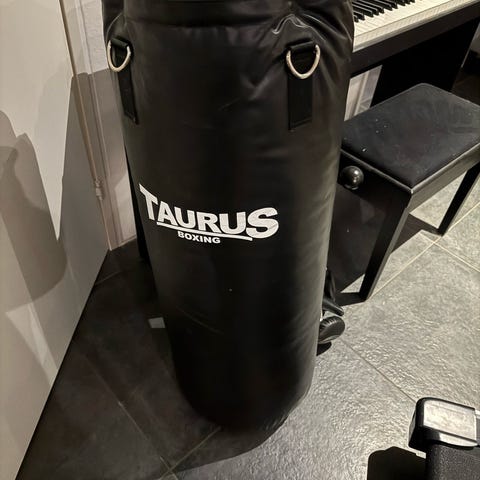 Boksesæk/ bold 90 cm lang og 28 cm i diameter og kender ikke vægten med ikke af de tungeste