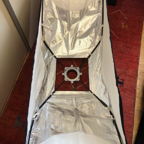 TrueWhite - easy-fold 30x140cm aflang strip softbox med indre og ydre diffuser lag og Bowens / S type fatning. Medfølgende grid. Brugt 1 gang.
