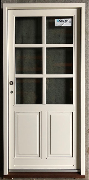 Ny døren er i træ med 3 lags glas, hård træ bund, 3 punktslås og nøgle