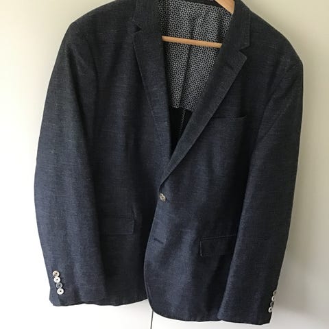 Klassisk, figursyet habitjakke fra SAND. Jakken har skulderpuder, to pynte-/snydelommer foran og en lille inderlommer i venstre side. Jakken lukkes med to knapper fortil.