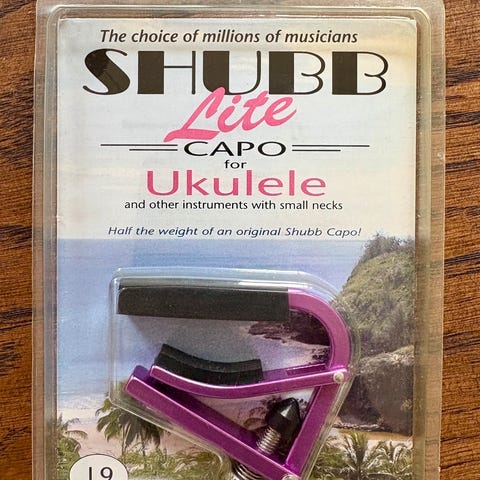 Sælger denne Shubb C9B capo, som er specifikt designet til ukuleler. Shubb er kendt for deres patenterede rulle-design, der giver det helt perfekte tryk uden at ødelægge intonationen, så du slipper for at stemme om, hver gang du flytter den.