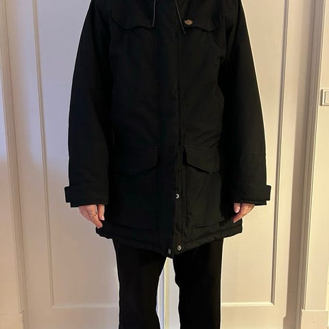 Topkvalitet Fjällräven 3/4 lang vinterfrakke med hætte. Farve sort. Aldrig brugt. Sælges kun pga. vægttab og er dermed blevet for stor.