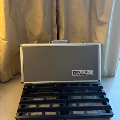 Pair of self-adhesive hook-and-loop (Velcro-style) fastening tapes—each strip 500mm long x 25mm wide—in durable black fabric for securely mounting guitar effects pedals to pedalboards. Industrial-strength adhesive bonds immediately without residue; easily cuttable for custom fits. Vintage Warwick Rockboard production (2018–2022) with reliable grip for touring pros. Pristine, factory-sealed.