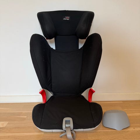 Britax Römer Autostole i størrelse 36 cm med gråt betræk. Designet til børn og monteres i bilen for sikker transport.