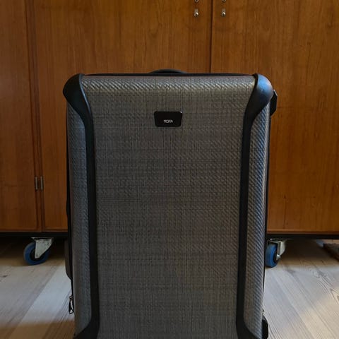 Kufferten fremstår som næsten ny, få brugsspor på stel og hjul.