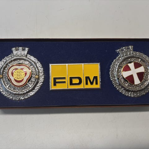 Unikt jubilæumsmærke til samleren eller veteranbilen! Sælger et FDM grille-emblem fra Forenede Danske Motorejeres 75-års jubilæum (1909-1984). Stand: Emblemet er ubrugt (NOS-lignende) og fremstår uden synlige brugsspor. Guldfarvet emalje/metal i perfekt stand. Detaljer: Et eftertragtet jubilæumsmærke, der blev produceret i et begrænset oplag. Originalt beslag medfølger. Perfekt til montering på en tidstypisk klassisk bil eller som et sjældent samlerobjekt. Sælges til fast pris på grund af den sjældne, ubrugte stand. (Se også mine andre annoncer for det ældre FDM emblem i original æske)