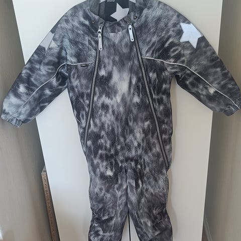 Molo børnedragt i størrelse 140, grå farve, unisex model. Dragten er designet til børn og har funktionelle detaljer som justerbar talje og forstærkede områder på benene. Materialet er velegnet til udendørs brug og sikrer komfort og bevægelsesfrihed.