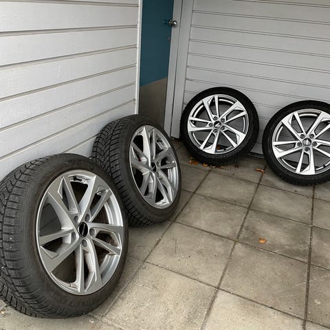 Carmani fælge 8.5x19 ET45 5x112 66.6 med vinterdæk Goodyear Ultra Grip Performance + 255/45 R19 104V med Tmps ventiler