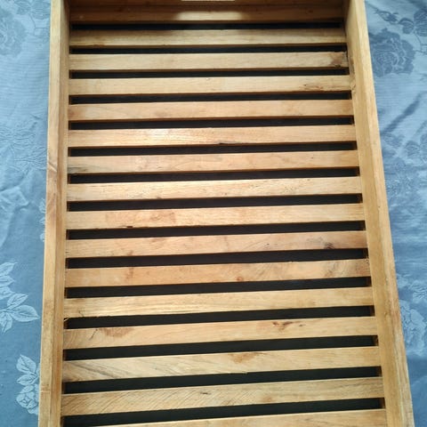Fin træbakke til enten servering eller dekoration. Aldrig brugt før, har 2 stks. og den anden bruger jeg som salt- og peberkværnsbakke :)