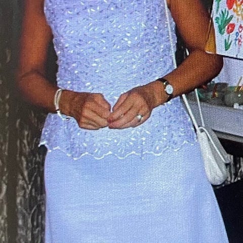 Elegant lang kjole med pailletter på overdelen og et smukt, lagdelt skørt. Kjolen har en V-udskæring og en asymmetrisk kant, der giver et unikt udtryk. Perfekt til festlige lejligheder. Der er trådt et hul nederst i tylskørtet, men det ses ikke, når musikken spiller 💃 Kjolen er lang (jeg er 156 cm. og kjolen er alt for lang, selv med stiletter med 11 cm. hæl som på billederne). Skørtet kan ligges op (vurderet af syerske) og på den måde slipper man også af med hullet. Jeg fik det bare ikke gjort og nu skal den videre 😊