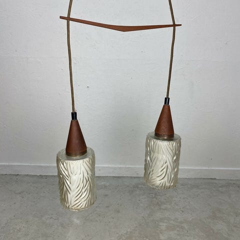 Retro teak, teaktræ, teaktræs glas lampe, pendel