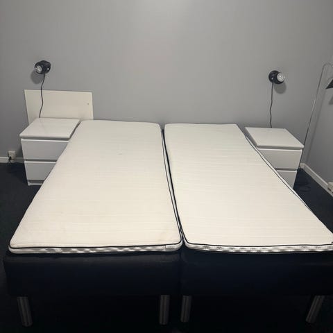 Sælges enkeltvis for 1000 kr. stk. (1 x boxmadras + 1 x topmadras)