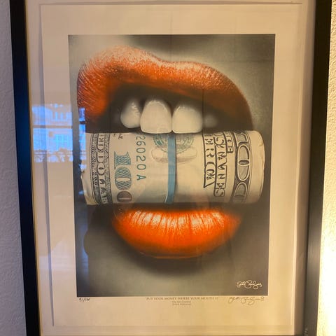 Etiket på bagsiden signeret af kunstneren Matt Adrian.