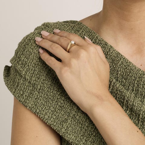 Perlering i 14K guld, Str. 64-Guld