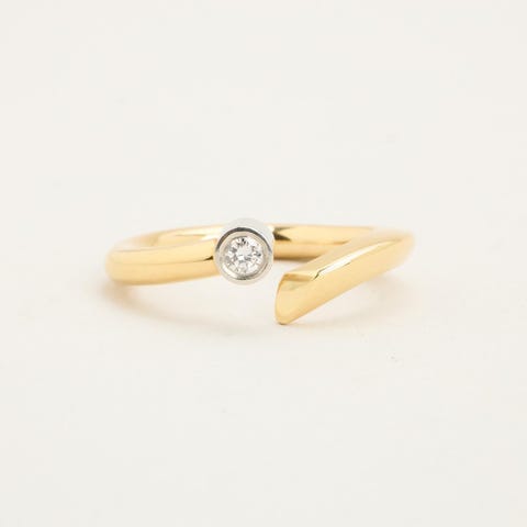 Crossoverring i 14K guld og hvidguld med en diamant (0.04