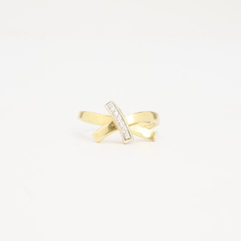 Crossover ring i 14K guld med diamanter (0.03 ct), Str.