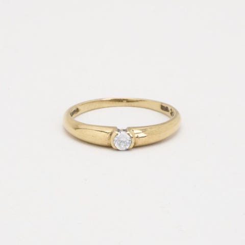Solitairering i 8K guld med en zirkonia, Str. 59-Guld