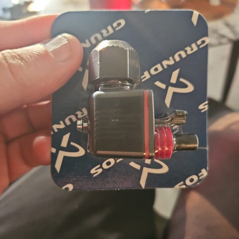 Det er en lille, plastikkomponent med to stifter i den ene ende, der passer ind i pumpens tilsvarende huller, og en kabeltilslutning i den anden ende.