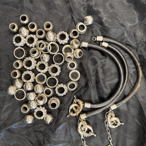 Smykke sæt i læder med perler. 40 kr