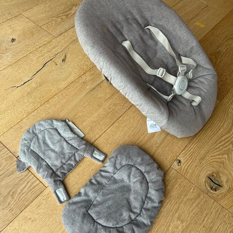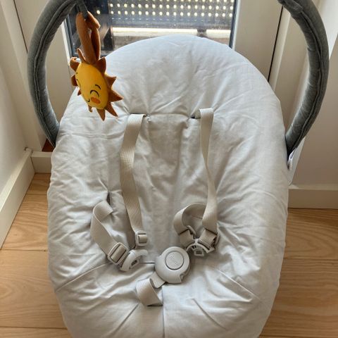 Nomi baby base i grøn. Brugt, men den er i rigtig god stand. Ingen pletter eller lignende. Der medfølger ikke 5 punkt sele