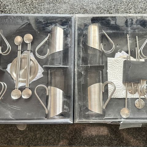 Icecoffe sæt består af en stor bakke med små bakker til glassene, glas, sugerør og stempelkande. Noget af det er brugt få gange.