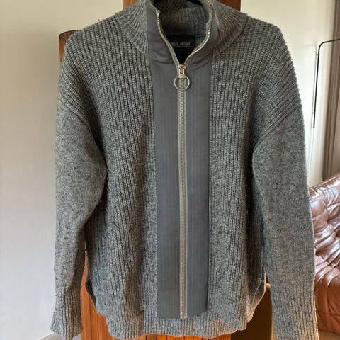 Lækker strik i lysegrå. Brugt to gange og fremstår som ny.