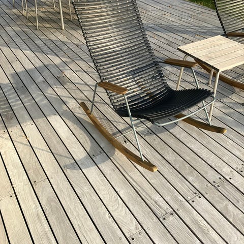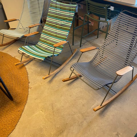 Her har jeg 2 rigtig flotte udendørs gyngestole, fra HOUEs RECLIPS kollektion.