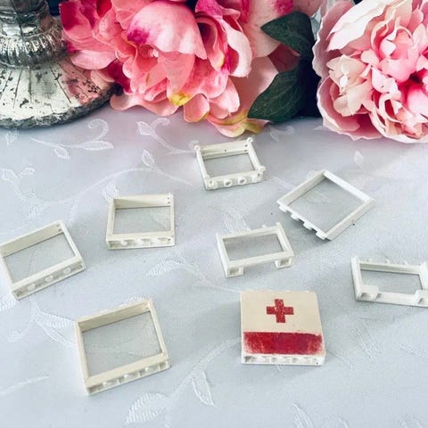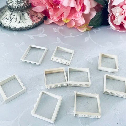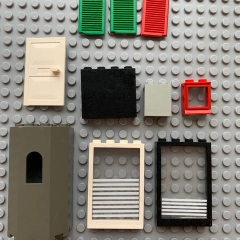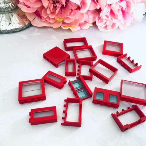 Div. Gamle Lego vinduer. Dem længst til højre i billedet er uden "glas". Samlet salg og pris.