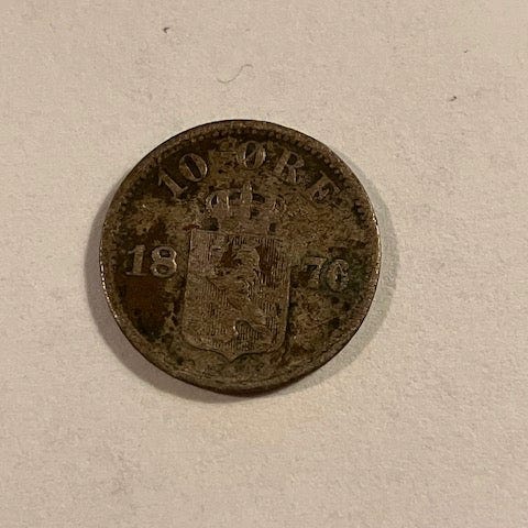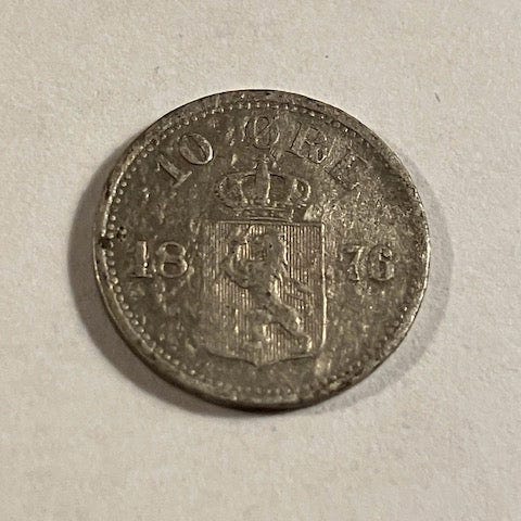 NORGE: 10 øre 1877. Flot mønt den sværste i serien.