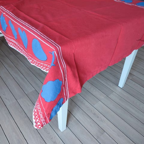 Helt utrolig sød dug fra Karen K. Den er fra 1979. Længde 195 cm, bredde 100cm.