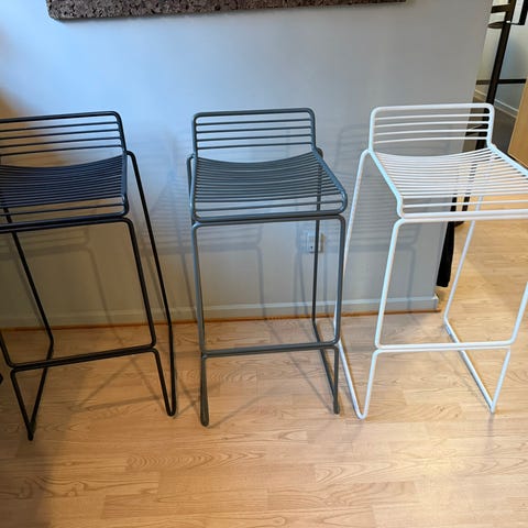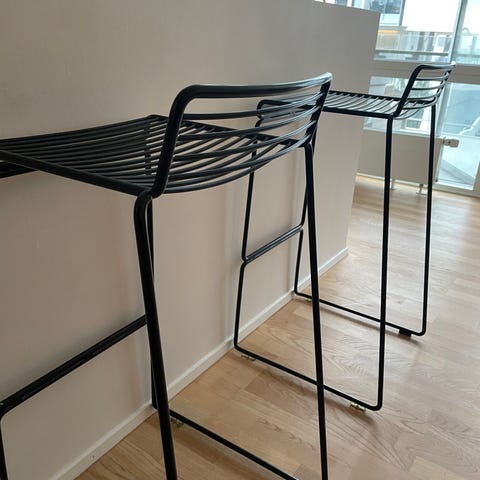 To fine hay barstole. En i sort og en i mørk grå. De er 65cm og i meget god stand - prisen er pr stk :) men du kan købe begge for 750kr
