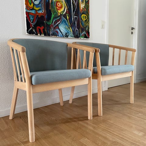 Jeg søger en Skalma sonet tremmestol i bøg og med sort læder