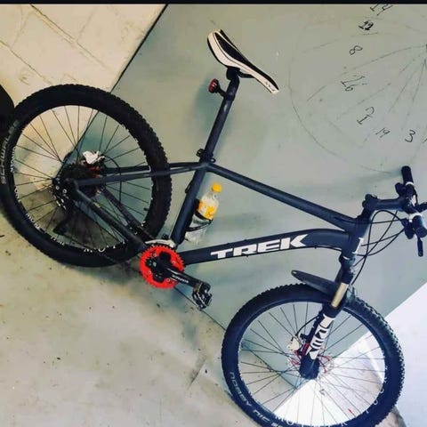 Rød Trek mountainbike sælges. Cyklen kører godt og er mekanisk i orden, men mangler saddel og det ene håndtag.