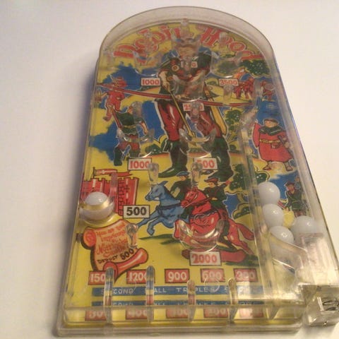 En gammel flipper maskine eller kuglespil , fra 1960 erne ‘ er i original papkasse, med tekst BE BOP ,made in Denmark . Søgeord, legetøj, samler, samleobjekt, SENDER KUN MED DAO ELLER AFHENTNING.
