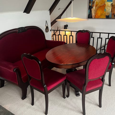4 stole , lænestole og sofa, købt for 10000 i 1998. Bud modtages.