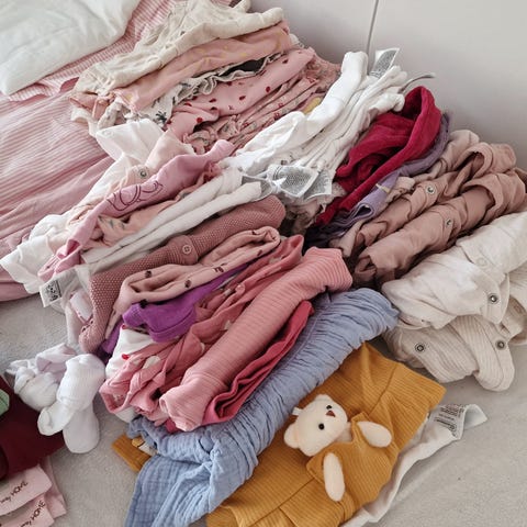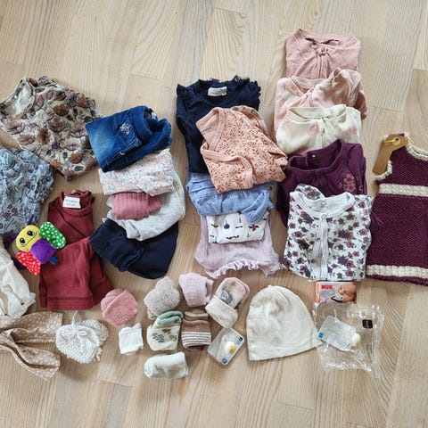 Blandet baby pakke med bamse til pige, Ass, str. findes i flere str., Blandet baby pakke til piger str. 62-68.
