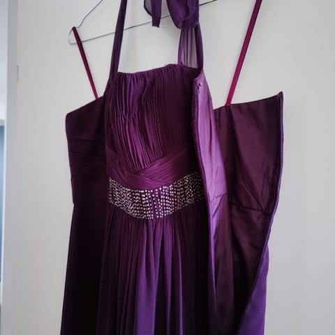 Gallakjole, Ass, str. L, Mørkrosa, Polyester, Næsten som ny, Den er så smuk denne gallakjole i rosafarvet, så ærgerligt over at jeg ikke kan passe den længere.