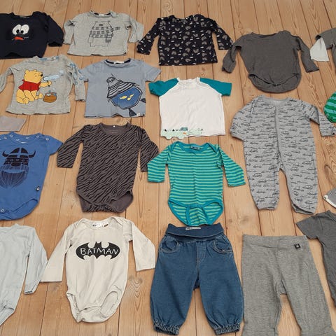 Blandet brugt drenge pakke med baby tøj og bamse, Ass, str. findes i flere str., Blandet drenge pakke med baby tøj str. 62-74.