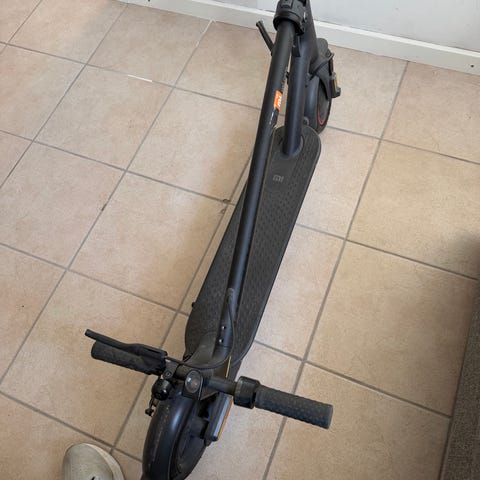 God stand, el-løbehjul. Har en lille flænge der kom på grund af den var med i en viaplay serie. Det er en Xiaomi M365 og det har 3 gir. Gir 1 køre 15km/t. Gir 2 køre 22-24km/t og gir 3 kan køre 31-32km/t. Kan foldes sammen som set på billederne. Den køre fint og har ingen problemer, den er et halvt år gammel.rr