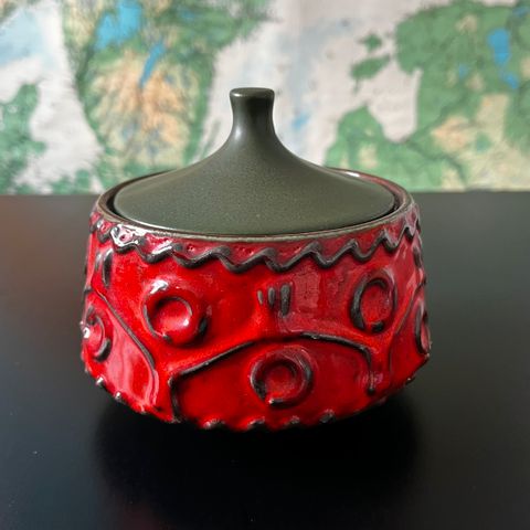 Flot Carstens Tonnieshof, West Germany vase fra 60’erne. Den er i perfekt stand - ingen skår eller noget. Den måler 22 cm og er glaseret med farver i turkis, grønlige og gul/ brunlige farver.