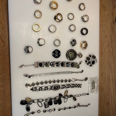 Halskæden er 46 cm lang og armbåndet er 22 cm lang. Der er flere huller til at spænde halskæden eller armbåndet længere ind. Æsken høre ikke til, men du må gerne få den med, hvis du ønsker dette, så du kan opbevare smykkerne velholdt og pæne. Sælges kun samlet.
