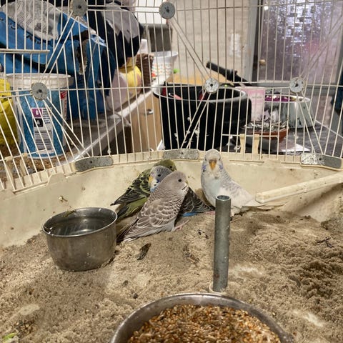 Jeg sælger mig og min datters fugle 🦜de er to australske undulater! Tessa (den grå) lime (den grønne). Den grønne er en dreng, og den grå er en pige . De har ikke fået unger. Men der er rede kasse hvis det skulle ske 🪺 den grønne er ca 3 år den grå er ca 9 måneder. De er ikke håndtamme men man kan håndfodre og nusse dem når de har lyst. Der medfølger mad og godbidder. Og bur og alt tilbehør.