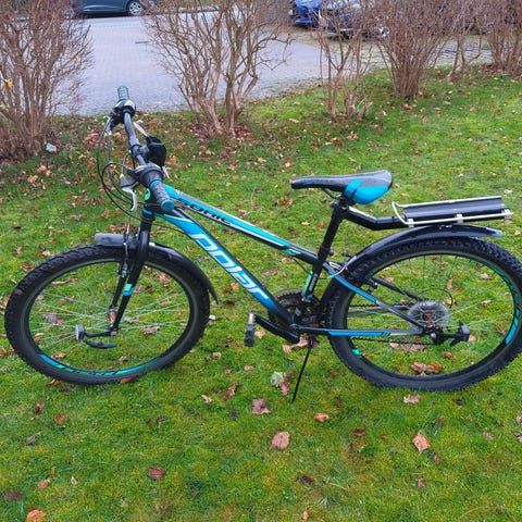 Fin mountainbike. Den trænger til en kærlig hånd og en justering af bremser og gear, men derudover en fin cykel.