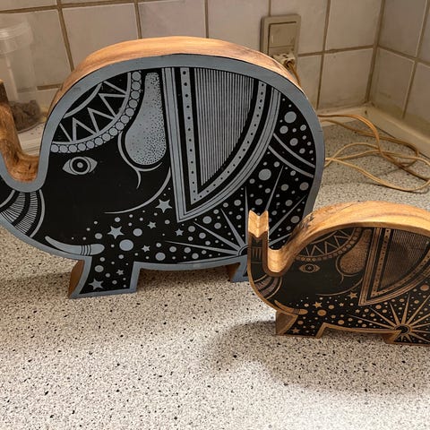 Stor + lille elefant sælges kun samlet.
