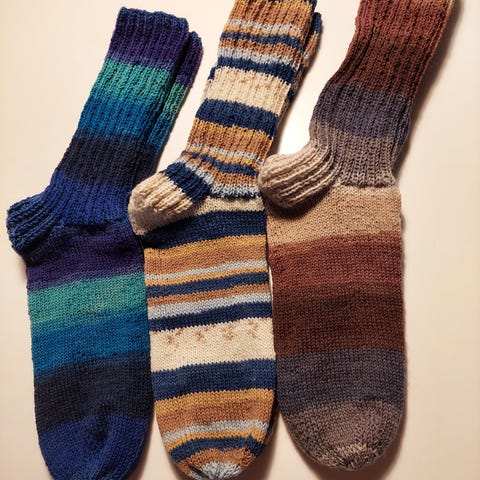 Håndstrikkede uldsokker i flotte farver.