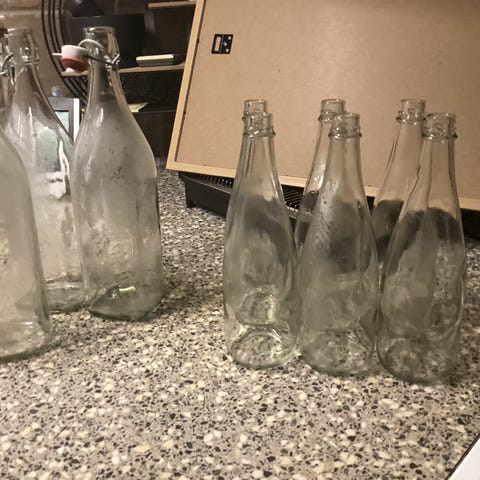 Fine assorterede flasker i grønt glas. 15 - 20 stk.