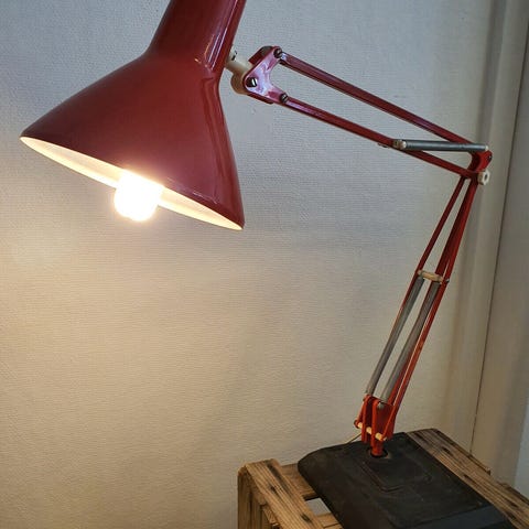Lampen har flere ridser på den sorte bund og på messingdelen. Se billeder.