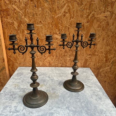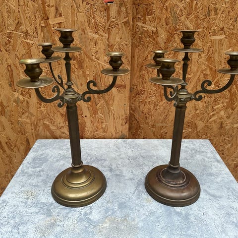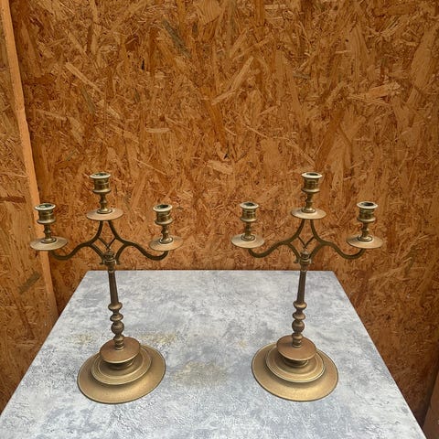 Lysestager/Kandelaber/Trearmet/Pladestager i messing,omkring 1910.