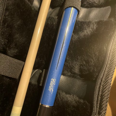 Poolkø, Super fiin pool kø på 150 cm, som den skal være. Fejler ingenting ud over at jeg lige kom til at slå det lille stykke af da jeg skulle pakke den sammen igen. :-( Køen er brugt til pool turneringer. :-)